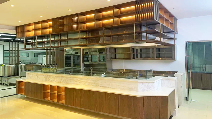 智慧廚房 冠廚廚房設備生產廠家認為連鎖餐飲餐廳的外觀、色彩以及裝飾,都因經營內容的不同而有所區別,但一般作為餐廳的前廳都應寬敞、明亮。 連鎖餐飲餐廳的廚房設計中,必須要保證菜品出品及時、質量優良,不能單純追求節省。因此首先要配置足夠的加工設備,原料加工、切配設備…… 【查看詳情】